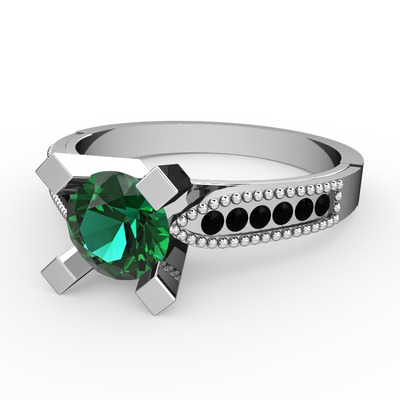 Yeşil kuvars ve siyah zirkon 8 ayar beyaz altın yüzük