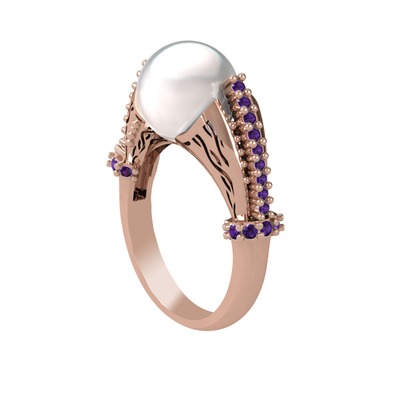 Inci ve ametist 925 ayar rose altın kaplama gümüş yüzük
