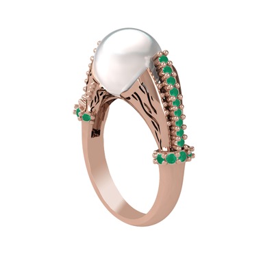 Inci ve kök zümrüt 8 ayar rose altın yüzük