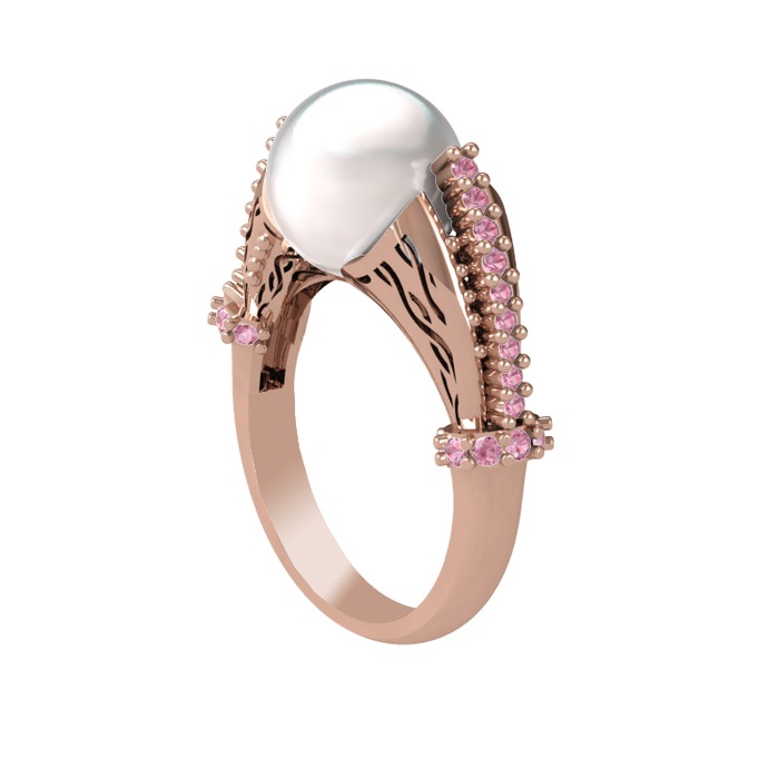 Inci ve pembe kuvars 18 ayar rose altın yüzük