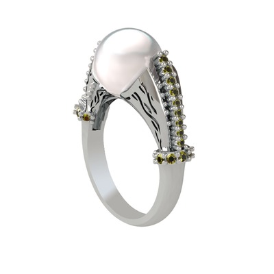 Inci ve peridot 925 ayar gümüş yüzük