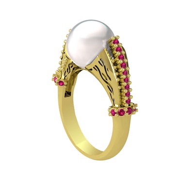 Inci ve rodolit garnet 8 ayar altın yüzük