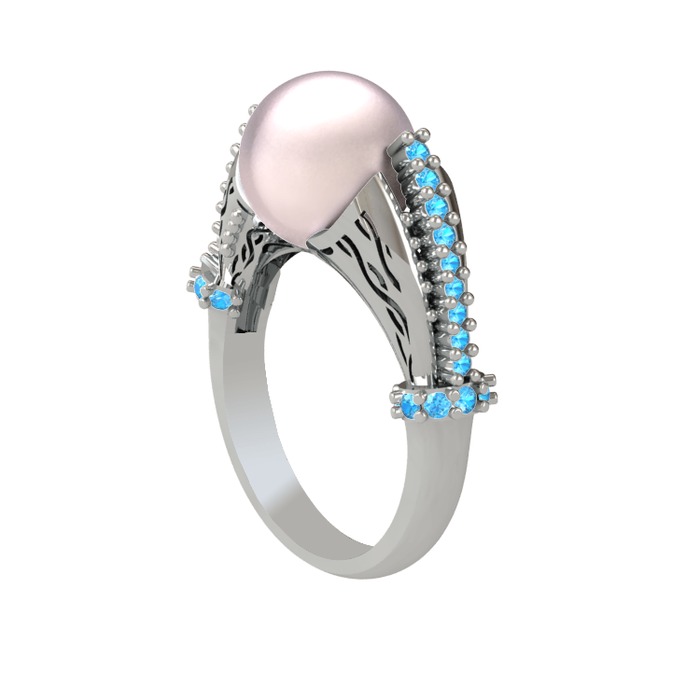 Pembe inci ve akuamarin 14 ayar beyaz altın yüzük