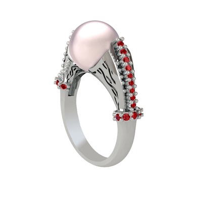 Pembe inci ve garnet 8 ayar beyaz altın yüzük