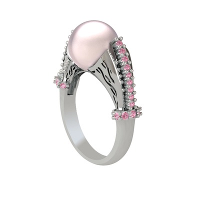 Pembe inci ve pembe kuvars 18 ayar beyaz altın yüzük