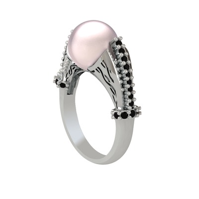 Pembe inci ve siyah zirkon 18 ayar beyaz altın yüzük