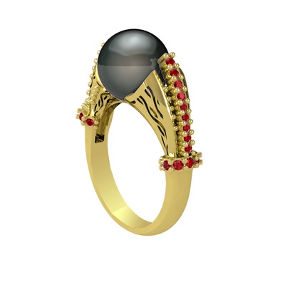 Siyah inci ve garnet 14 ayar altın yüzük