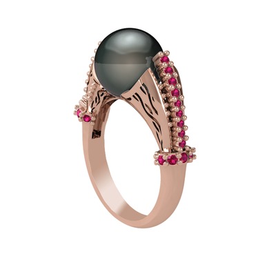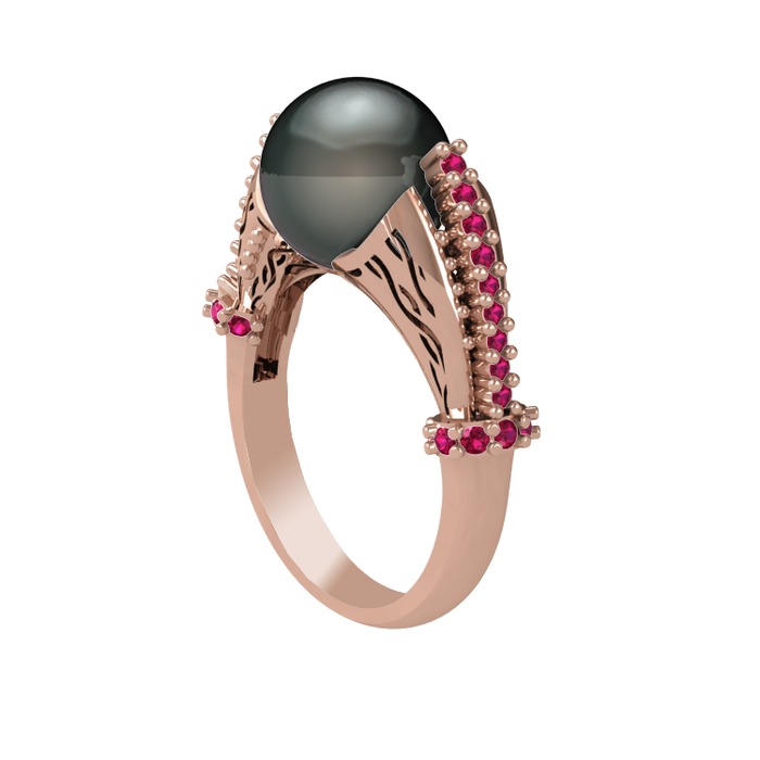 Siyah inci ve rodolit garnet 925 ayar rose altın kaplama gümüş yüzük