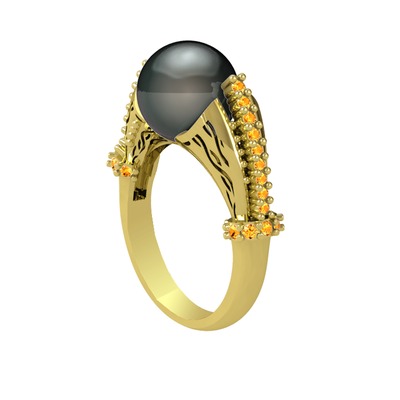 Siyah inci ve sitrin 925 ayar altın kaplama gümüş yüzük