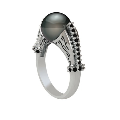 Siyah inci ve siyah zirkon 8 ayar beyaz altın yüzük