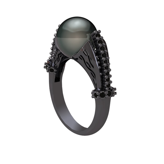 Siyah inci ve siyah zirkon 925 ayar siyah rodyum kaplama gümüş yüzük