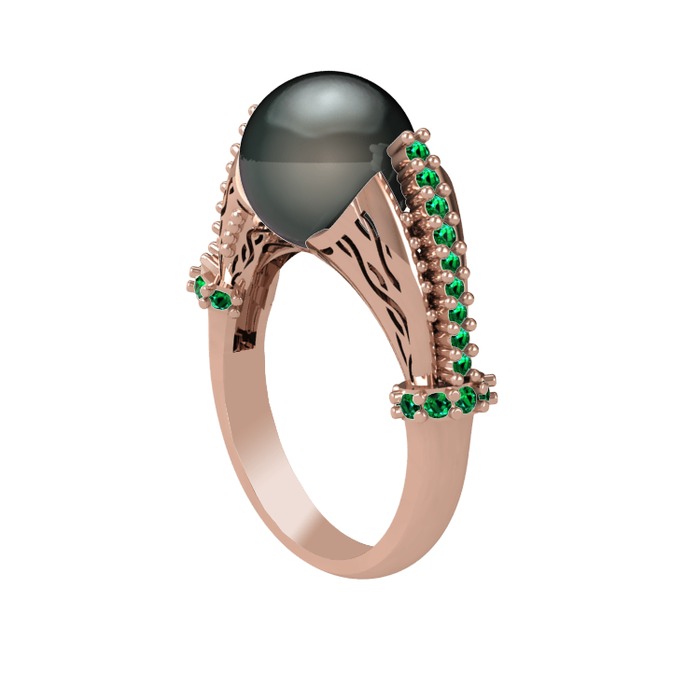 Siyah inci ve yeşil kuvars 8 ayar rose altın yüzük
