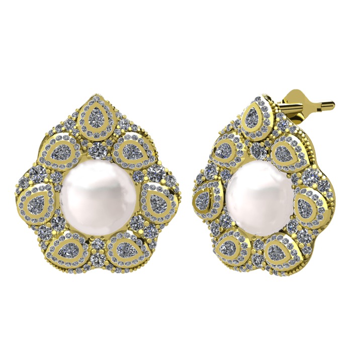 Inci ve beyaz zirkon 18 ayar altın küpe