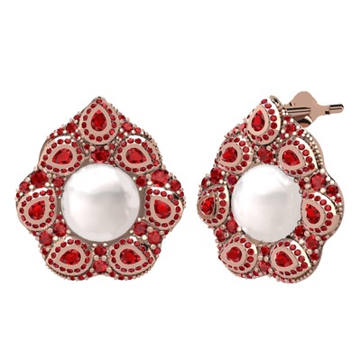 Inci ve garnet 14 ayar rose altın küpe