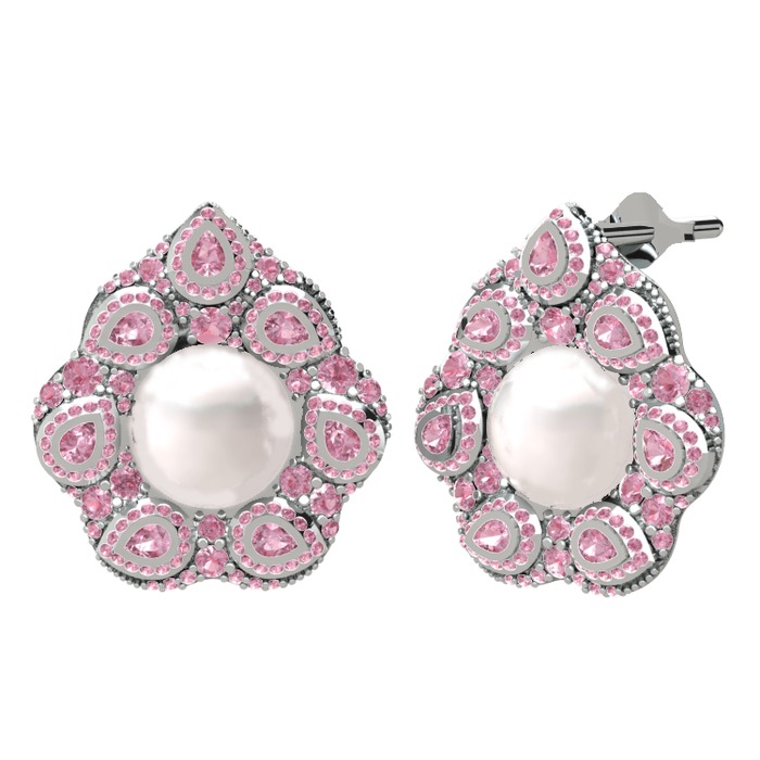 Inci ve pembe kuvars 925 ayar gümüş küpe