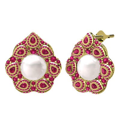 Inci ve rodolit garnet 925 ayar altın kaplama gümüş küpe