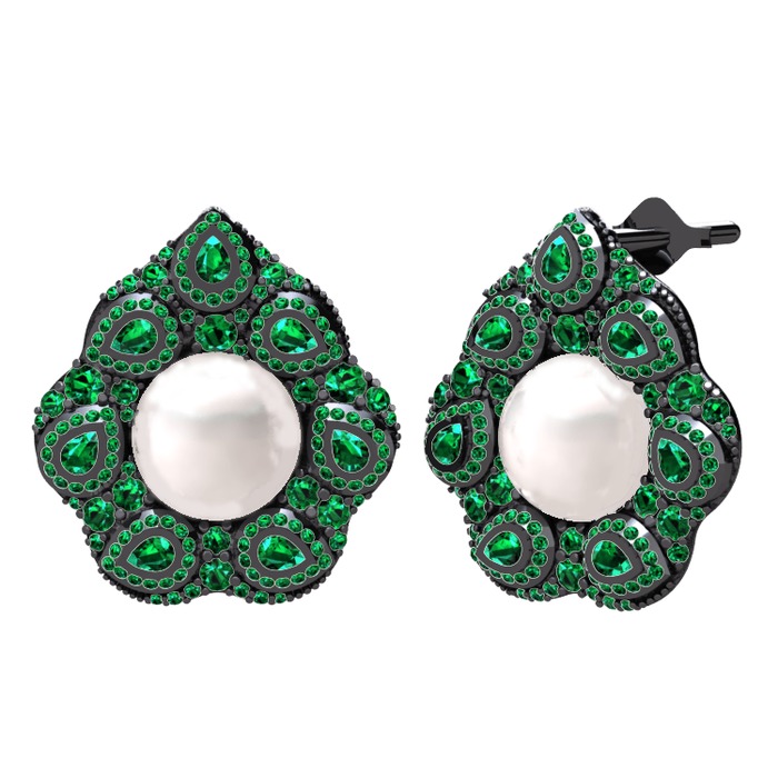Inci ve yeşil kuvars 925 ayar siyah rodyum kaplama gümüş küpe
