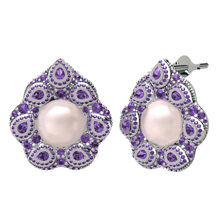 Pembe inci ve ametist 18 ayar beyaz altın küpe
