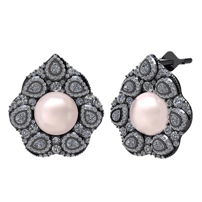 Pembe inci ve beyaz zirkon 925 ayar siyah rodyum kaplama gümüş küpe
