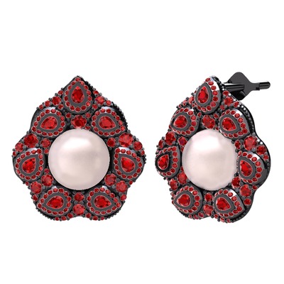 Pembe inci ve garnet 925 ayar siyah rodyum kaplama gümüş küpe