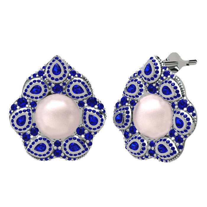 Pembe inci ve lab safir 14 ayar beyaz altın küpe
