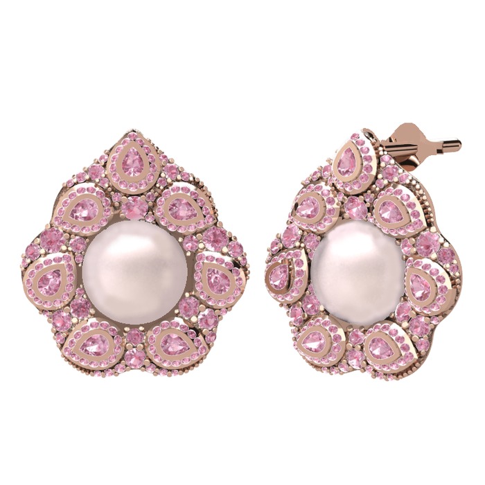 Pembe inci ve pembe kuvars 925 ayar rose altın kaplama gümüş küpe