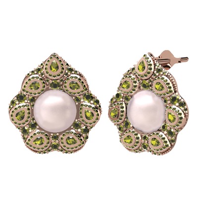 Pembe inci ve peridot 8 ayar rose altın küpe