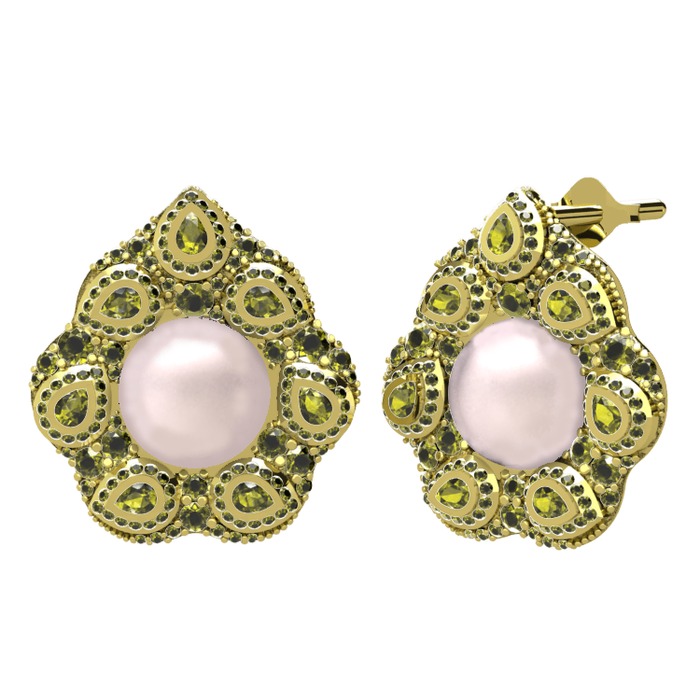 Pembe inci ve peridot 925 ayar altın kaplama gümüş küpe