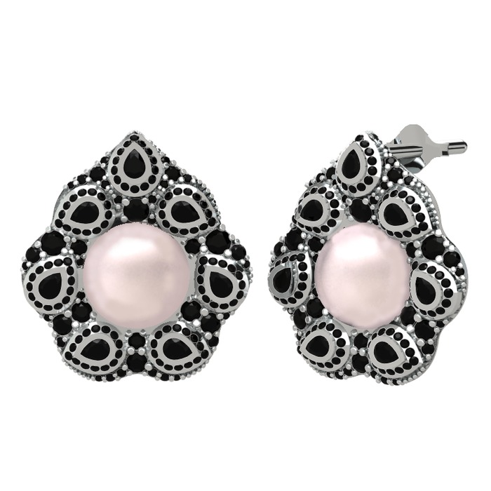 Pembe inci ve siyah zirkon 925 ayar gümüş küpe