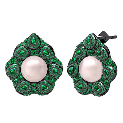 Pembe inci ve yeşil kuvars 925 ayar siyah rodyum kaplama gümüş küpe