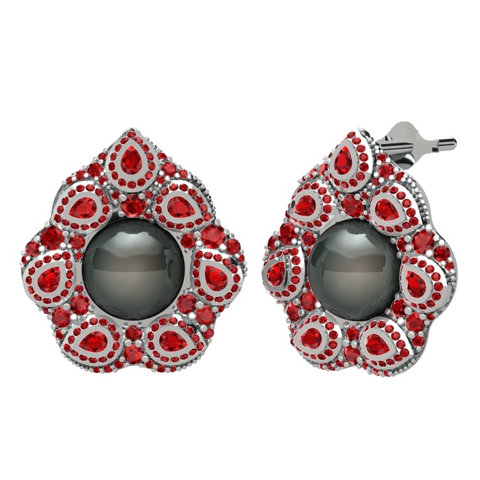 Siyah inci ve garnet 8 ayar beyaz altın küpe