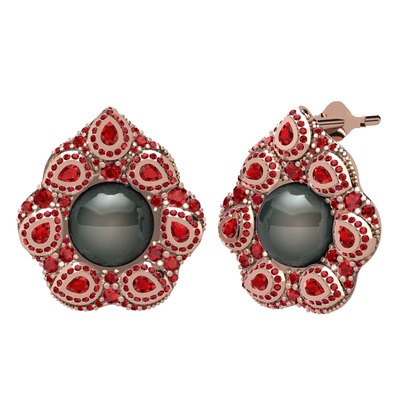 Siyah inci ve garnet 925 ayar rose altın kaplama gümüş küpe