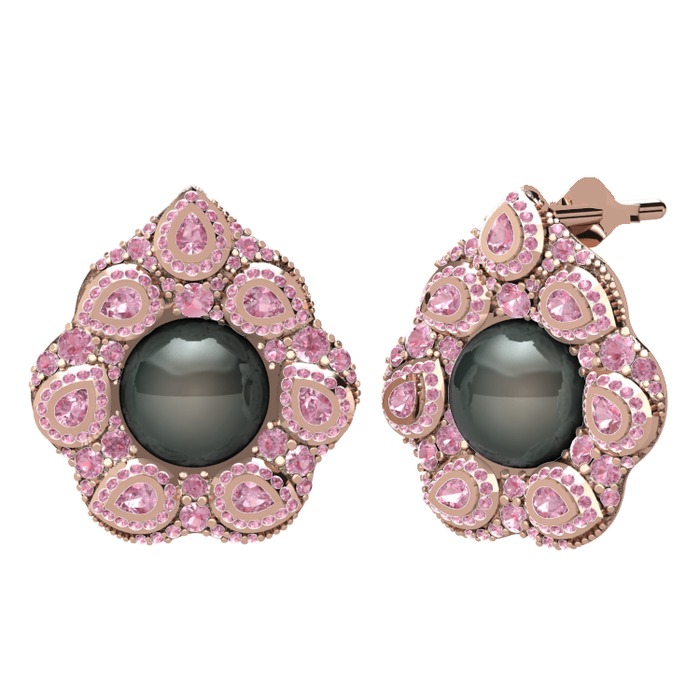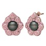 Siyah inci ve pembe kuvars 18 ayar rose altın küpe