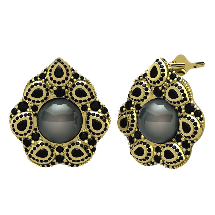 Siyah inci ve siyah zirkon 18 ayar altın küpe