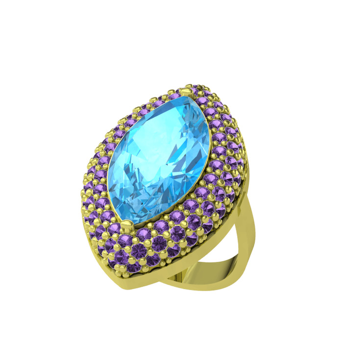Akuamarin ve ametist 18 ayar altın yüzük
