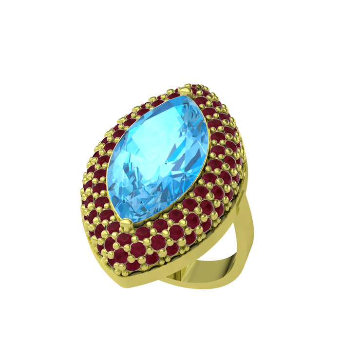 Akuamarin ve kök yakut 14 ayar altın yüzük