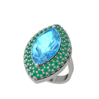 Akuamarin ve kök zümrüt 8 ayar beyaz altın yüzük