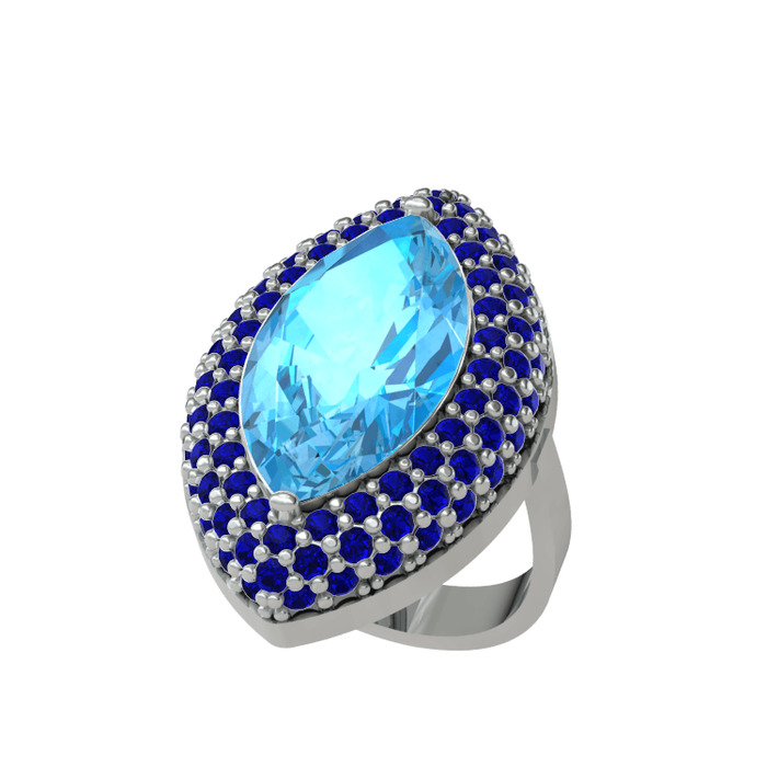 Akuamarin ve lab safir 8 ayar beyaz altın yüzük