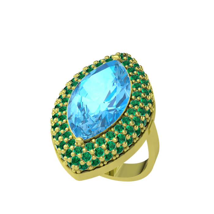 Akuamarin ve yeşil kuvars 18 ayar altın yüzük