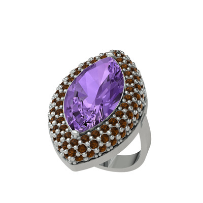 Ametist ve dumanlı kuvars 18 ayar beyaz altın yüzük