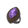 Ametist ve dumanlı kuvars 925 ayar siyah rodyum kaplama gümüş yüzük