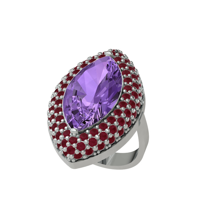 Ametist ve kök yakut 18 ayar beyaz altın yüzük