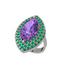 Ametist ve kök zümrüt 18 ayar beyaz altın yüzük