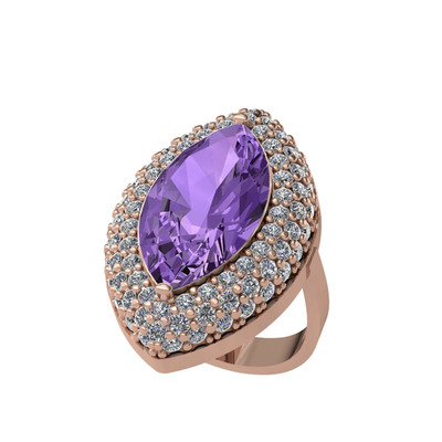 Ametist ve pırlanta 925 ayar rose altın kaplama gümüş yüzük (2.952 karat)