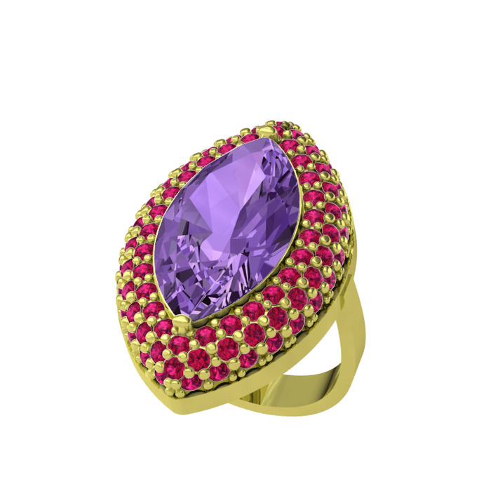 Ametist ve rodolit garnet 18 ayar altın yüzük