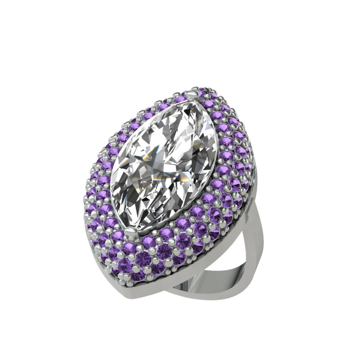 Beyaz zirkon ve ametist 925 ayar gümüş yüzük