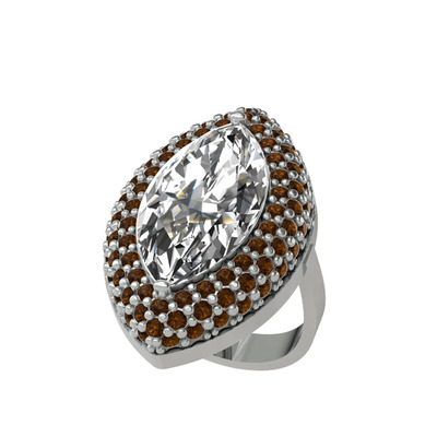Beyaz zirkon ve dumanlı kuvars 14 ayar beyaz altın yüzük