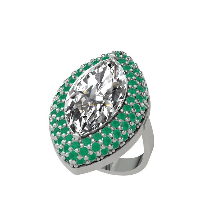 Beyaz zirkon ve kök zümrüt 14 ayar beyaz altın yüzük