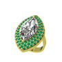 Beyaz zirkon ve kök zümrüt 925 ayar altın kaplama gümüş yüzük