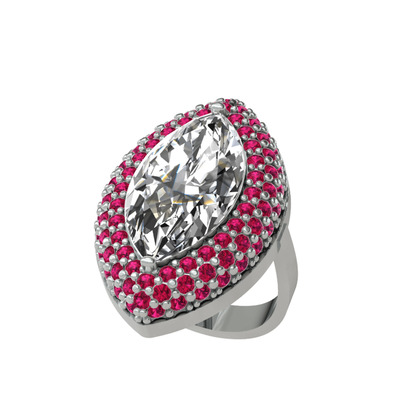 Beyaz zirkon ve rodolit garnet 925 ayar gümüş yüzük